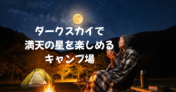 キャンプサイト 【2025年】月と星を満喫!光害少なく天の川を楽しむ“ダークスカイ”キャンプ場6選【全国版】 澄んだ秋の夜空を焚き火のそばで見上げる——街の明かりが届かない場所なら、月や天の川、流れ星までもが手に届きそう。ここでは 光害が少なく“ダークスカイ級”の星空が楽しめるキャンプ場7選 を全国から厳選して紹介します。ダークスカイって何?「ダー... 2025.09.26 キャンプサイト